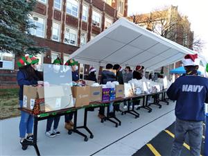 On Saturday, December 4, 2021 the members of the National Honor Society at Proviso East held their annual Breakfast with Santa event for the community. Over 35 families came to the event, put on by the National Honor Society, with help from Ms. Johnson and the NJROTC, and Chef Morris’ Culinary Club. Families enjoyed a free pancake breakfast, arts and crafts, story time, a visit from Santa, and much more. Over 50 student volunteers helped to serve over 150 breakfasts as well as gave away over 70 bags of toys and books to children. The morning was filled with festive cheer and was a great beginning to the 2021 holiday season!