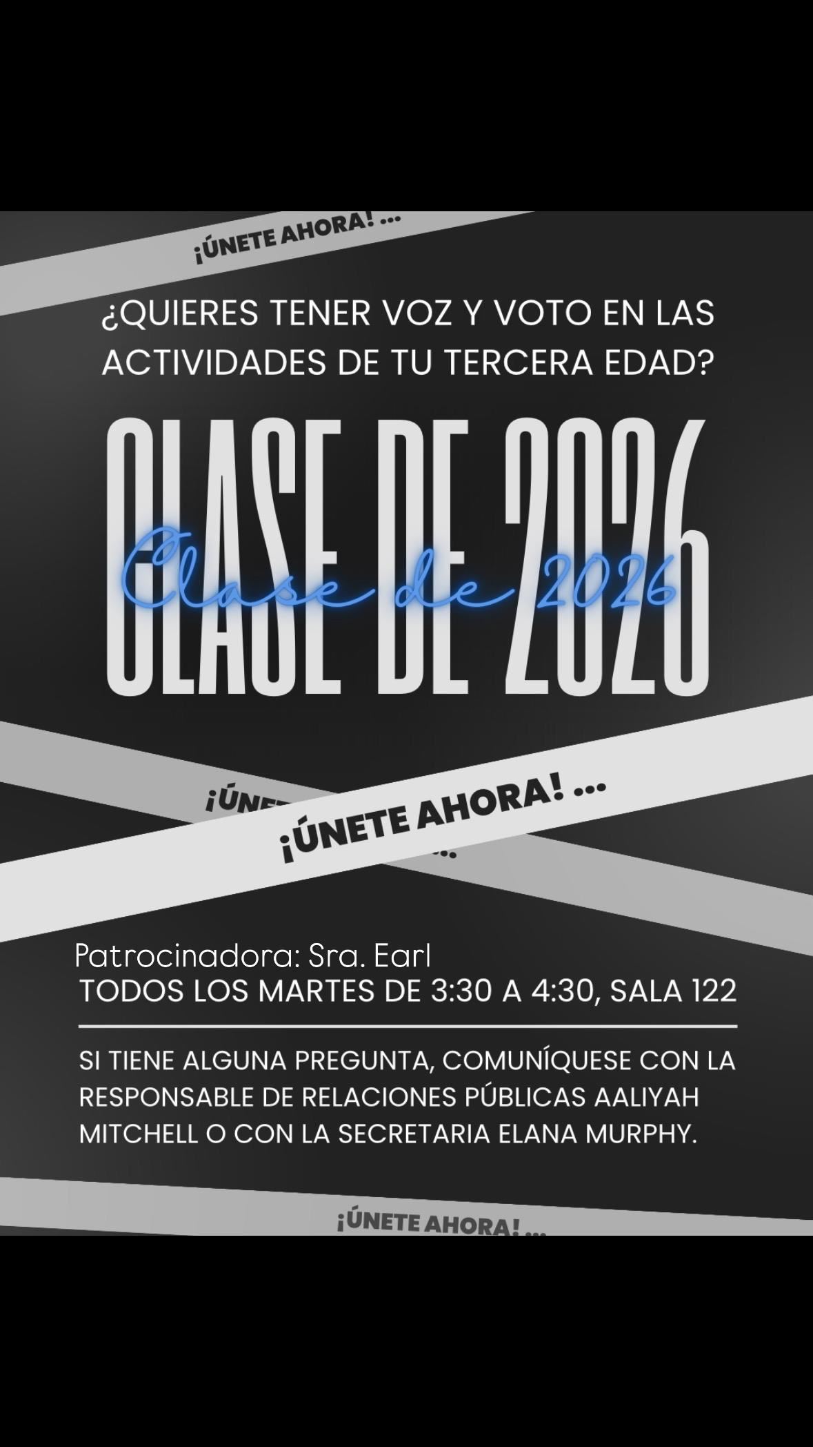 CLASS OF 2026!!!!Meetings are held to discuss planning events for 12th grade, as well as Graduation Pathways, the importance of scholarships, and College and Career Readiness. Class of 2026 meetings will take place in room 122 on Tuesdays. Class of 2026 Meetings are held to promote the following:Building a positive school cultureClass of 2026 meetings can help students feel a sense of community, empowerment, and responsibility. They can also help students learn healthy conflict management techniques and develop soft-personal skills.Improving student engagementClass of 2026 meetings can help students feel important and encourage them to participate in learning.Clarifying learning objectives and expectationsClearly stating expectations can help students understand what is expected of them and how to use their time productively.Supporting social and emotional learningClass of 2026 meetings can help students develop social and emotional skills that are important for life.Upcoming Events:Senior Sunset TBANational College Decision Day May 1stProm May 8thGrad Nite May 16thSenior Luncheon May 19th